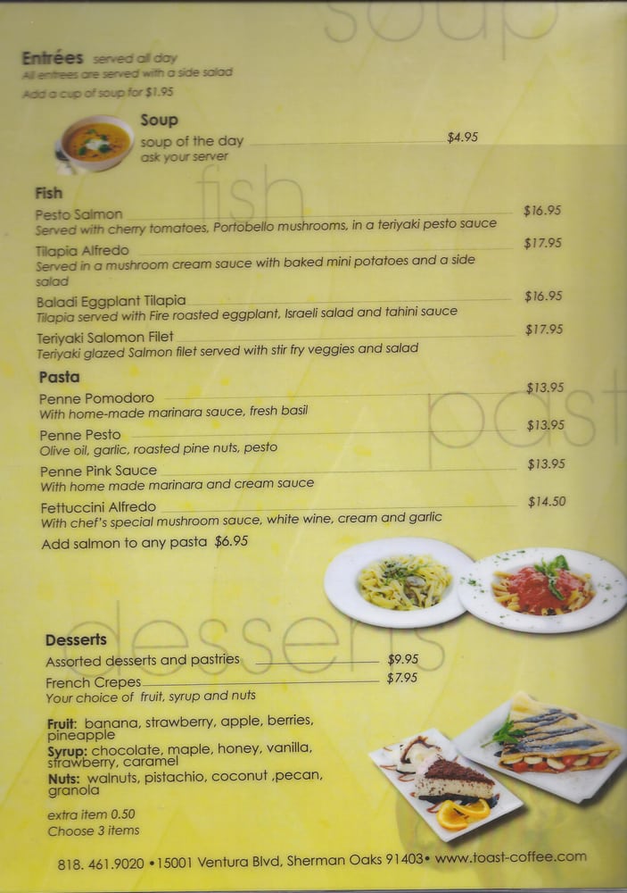 Welcome to Toast Cafe, a delightful haven for breakfast and brunch lovers located at 15001 Ventura Blvd, Sherman Oaks, CA. This charming cafe offers a rich menu that highlights freshness and quality, perfect for family outings, casual meet-ups, or a relaxing solo meal.